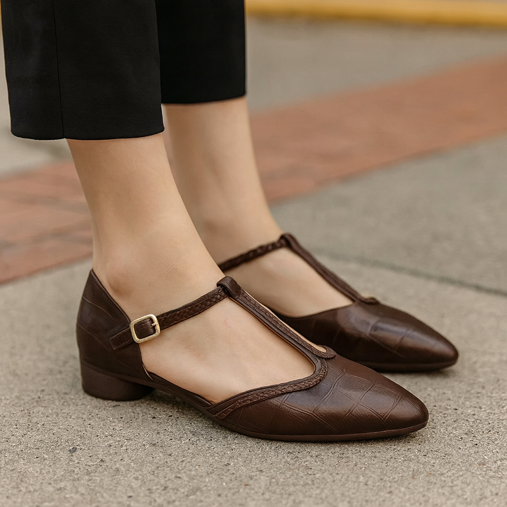 The Kena Mary Janes blend timeless grace with everyday wearability. Featuring a gently rounded toe, elegant T-strap, and delicate metal buckle, they offer a refined silhouette perfect for both daily looks and more polished moments. A flat heel keeps things comfortable – ideal for women who value subtle elegance and dependable support.