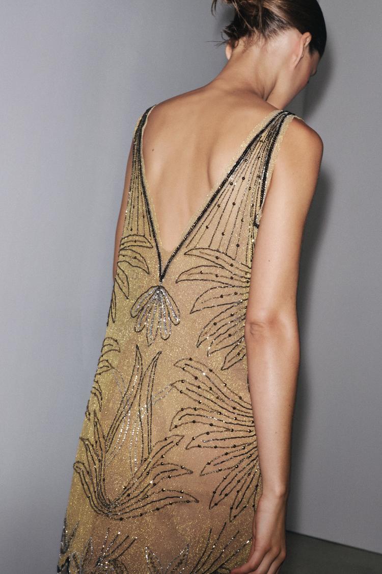 Our popular embroidered dress is a sure bet for an elegant statement. The lightweight tulle, beaded details, and soft lining make it comfortable, sophisticated, and perfect for special evenings.